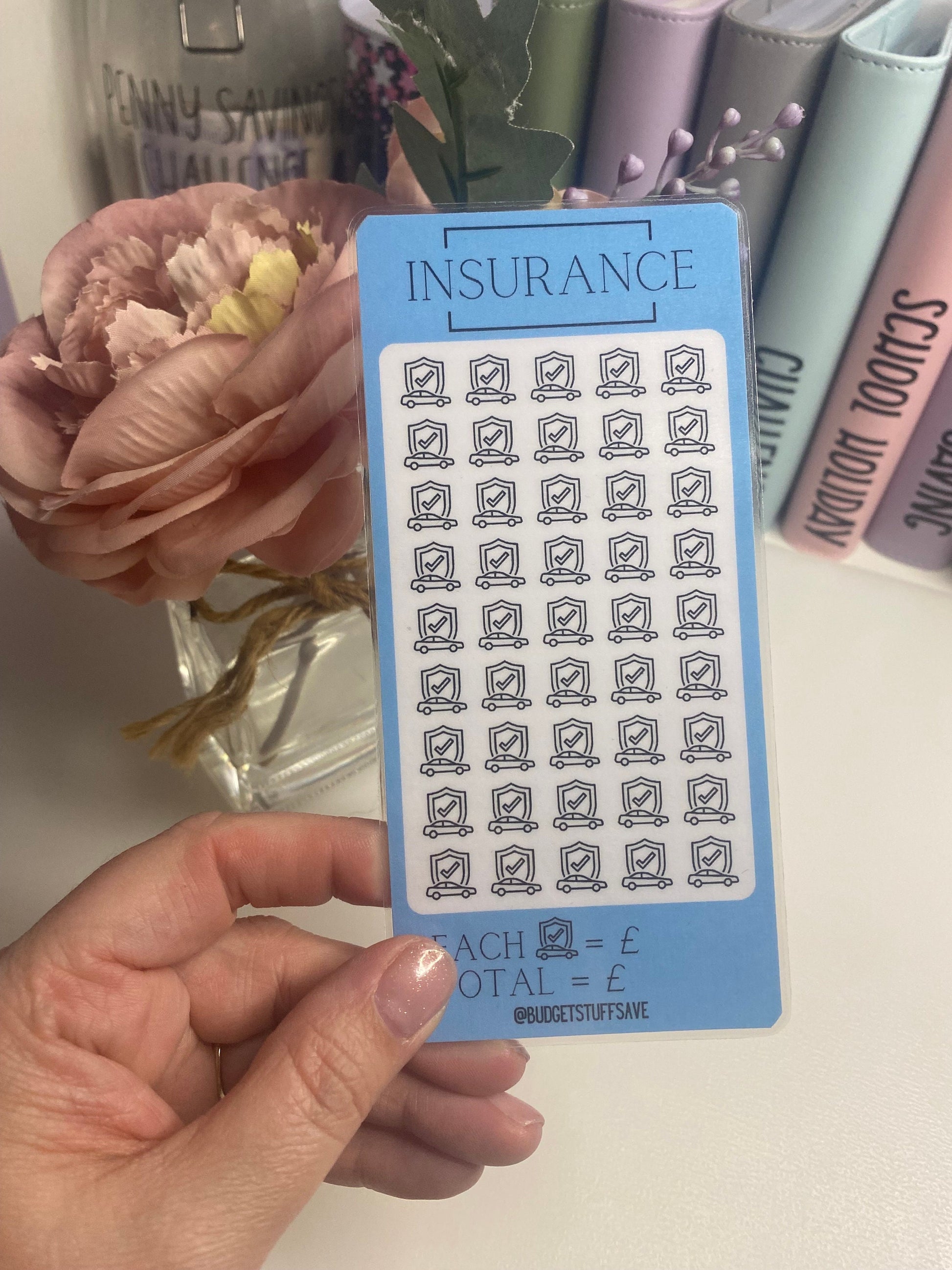 Blue Car INSURANCE savings tracker, budgeting, Cash stuffing