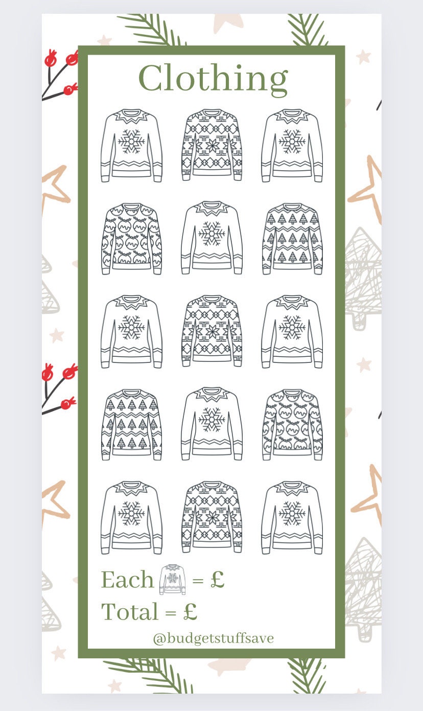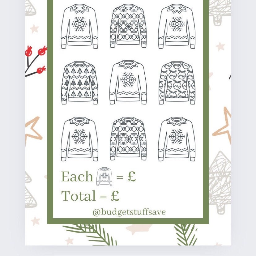 Christmas Clothing Savings Tracker, Cash Stuffing, Budgeting, Christmas Jumper Day