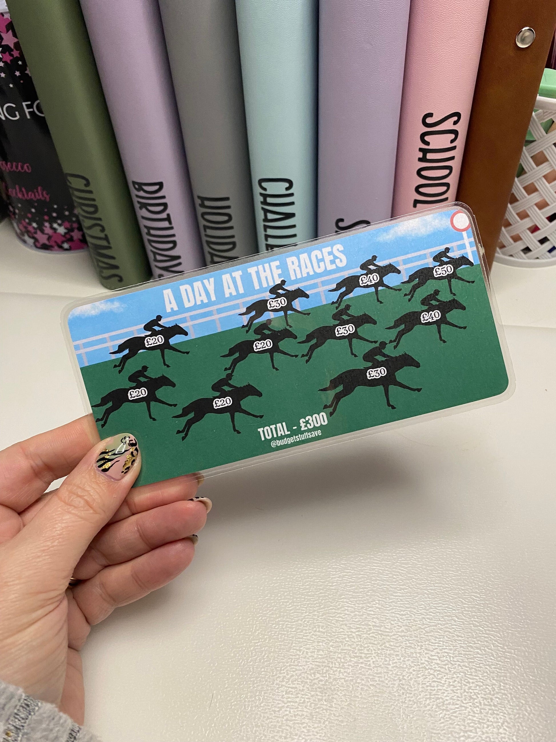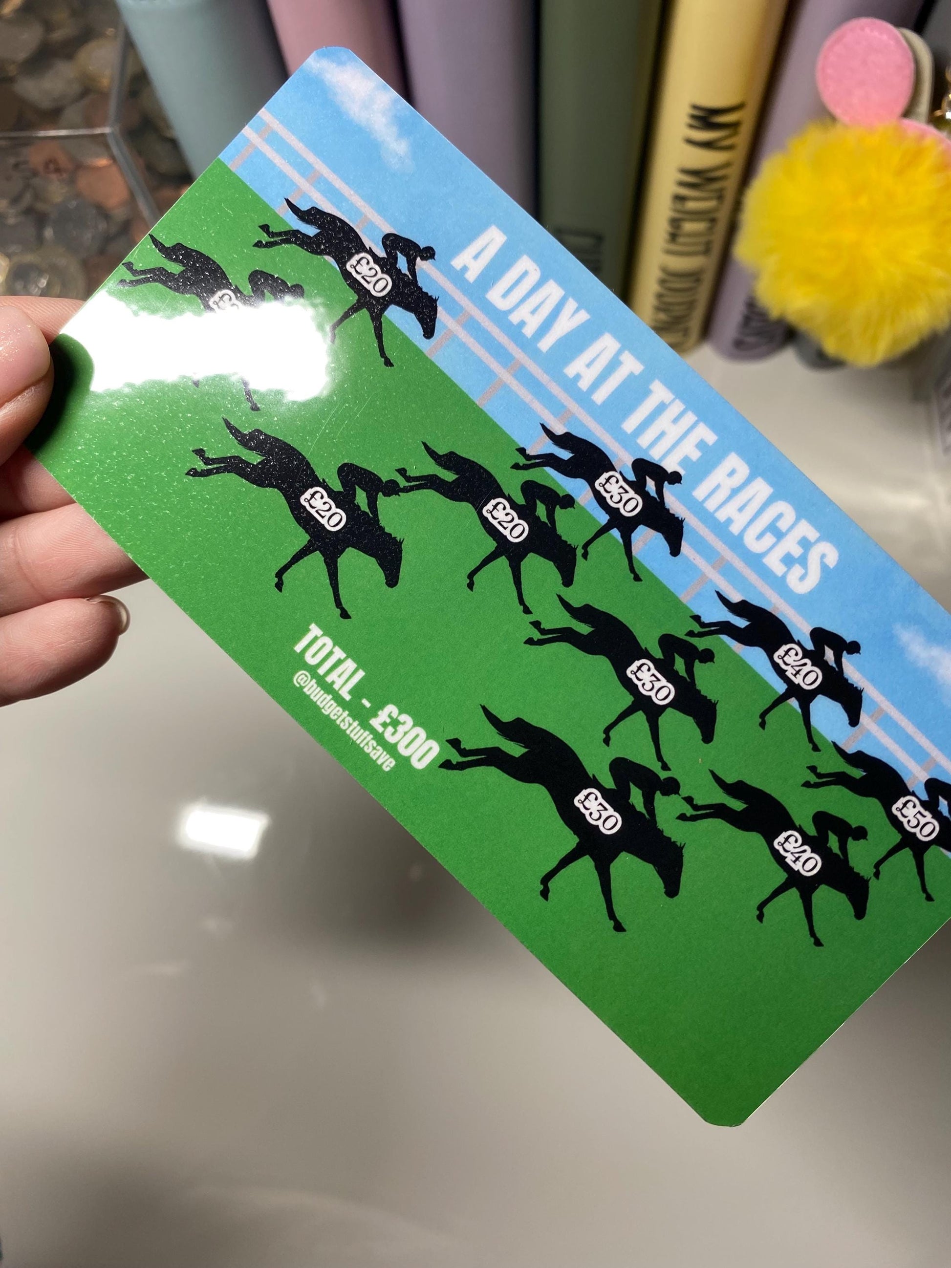 Day at the races Savings Tracker, Horses, Ascot Stuffing, Budget Binder Trackers, Save Money, Cash Envelopes, Budgeting