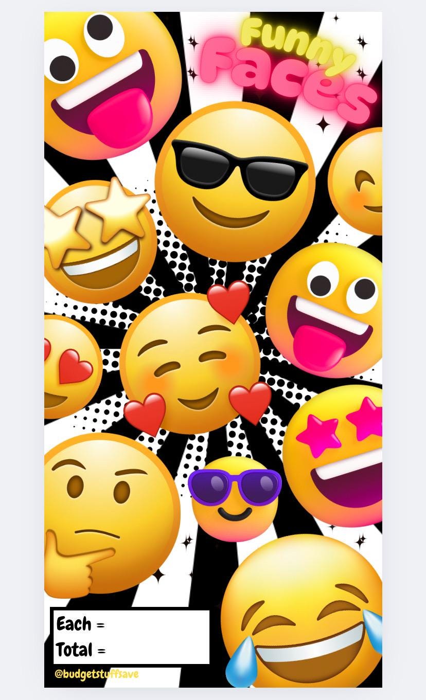 Funny Faces Challenge Savings Tracker and wallet, cash Stuffing, Budgeting, A6 binder, Save money, Envelope method, Budget, Challenge, Kids