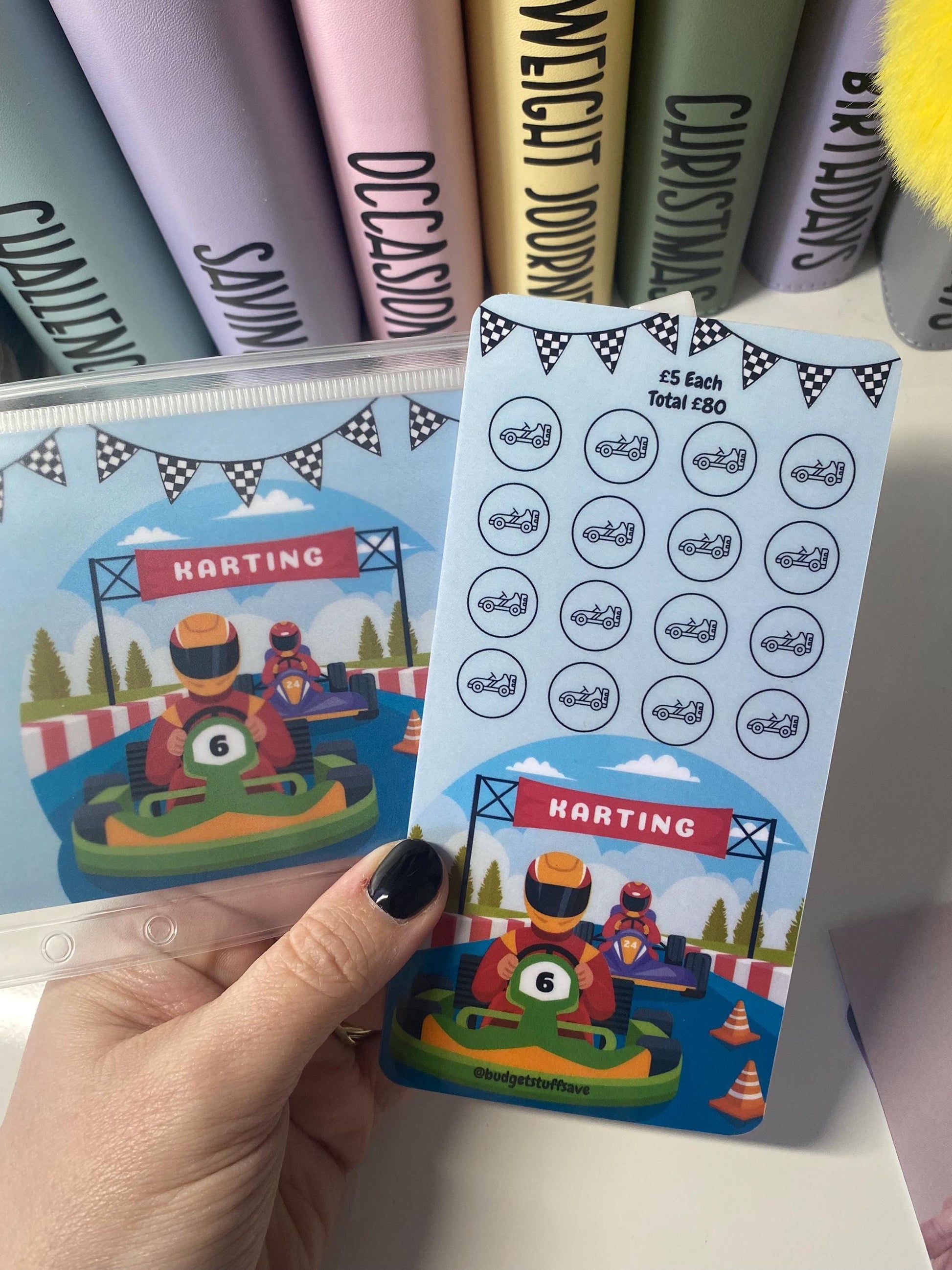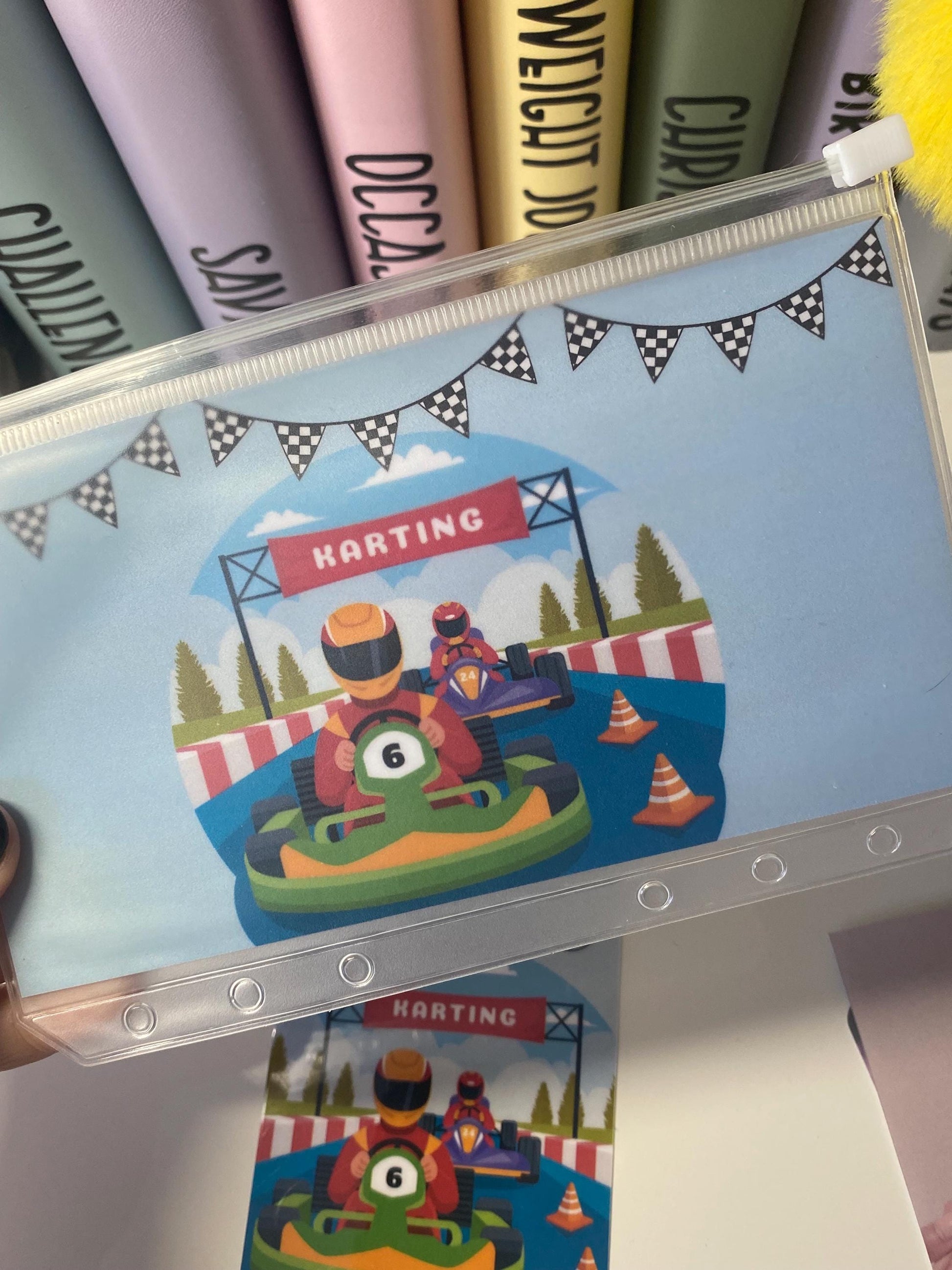 Go Karting Challenge Savings Tracker and wallet, cash Stuffing, Budgeting, A6 binder, Save money, Envelope method, Budget, Challenge