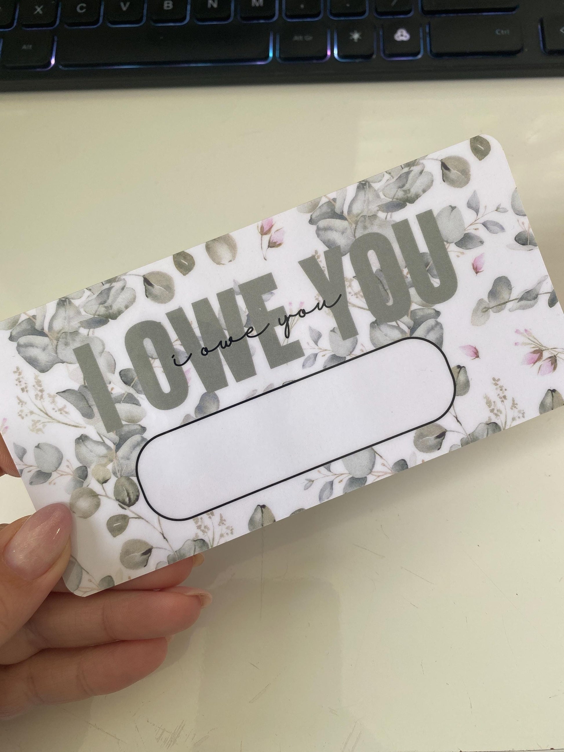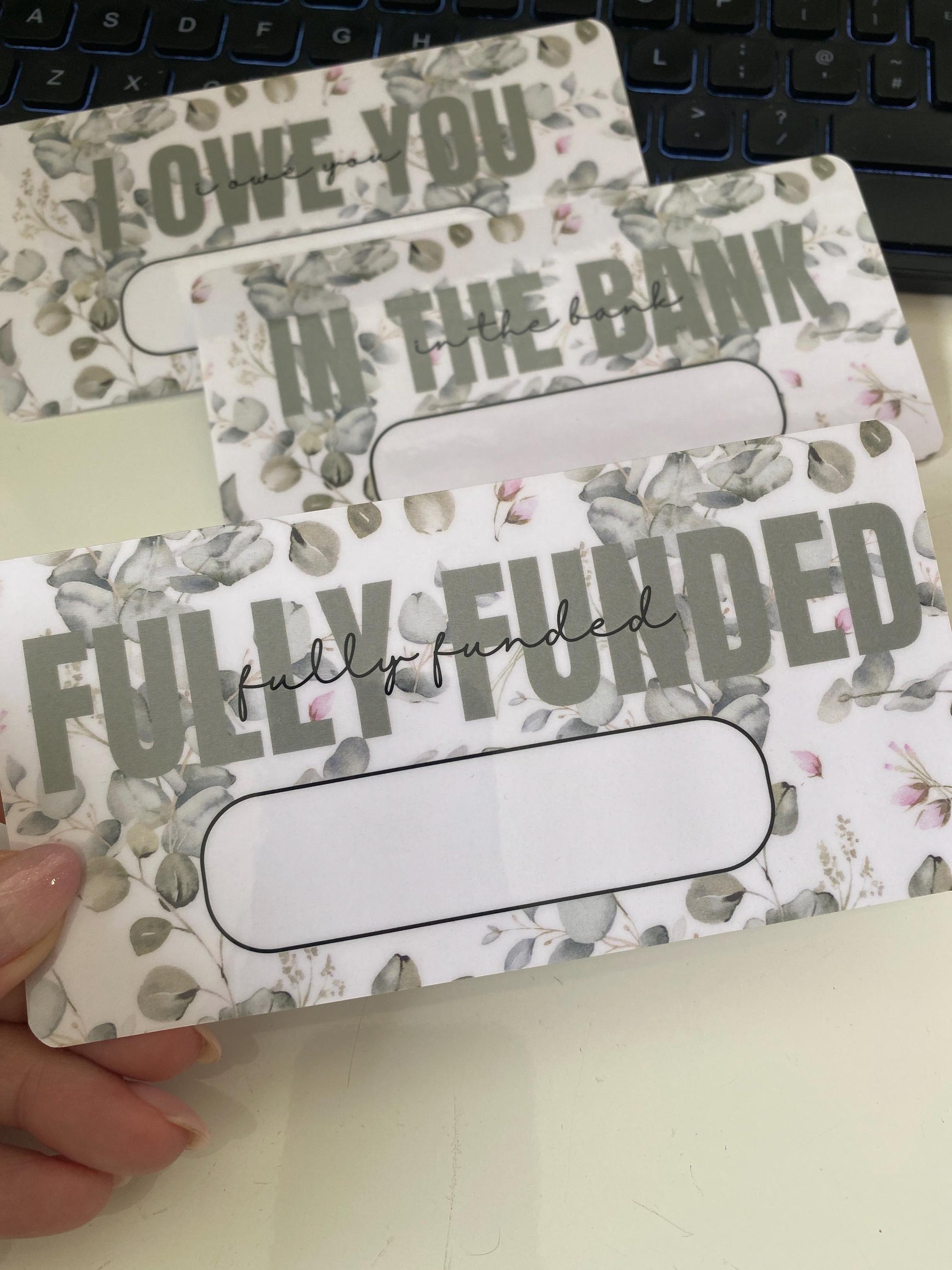 In the bank place cards, I owe you, fully funded tracker for Cash Stuffing, Budgeting, Wallets, Save, Cash, Organise