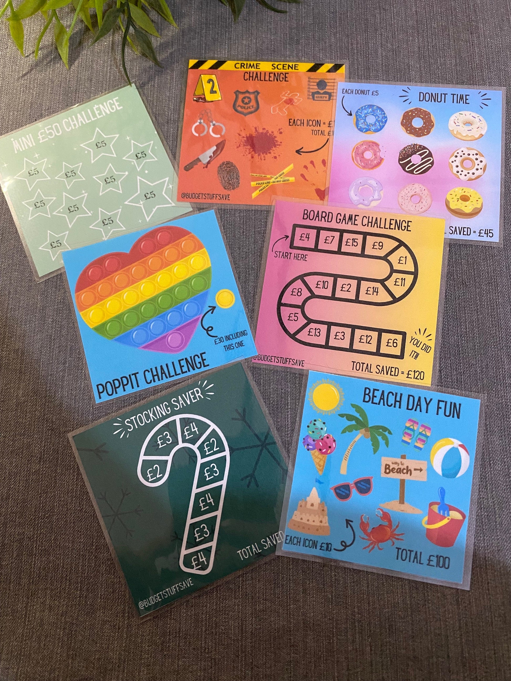 Introducing our Mini Tracker Bundle, packed with fun and rewarding challenges to enhance your everyday life! This bundle includes the Mini ยฃ50 Challenge, Crime Scene Challenge, Donut Time Saver, Poppit Challenge, Board Game Challenge, Stocking Saver, and Beach Day Fun trackers. Whether you're saving for a special goal, enjoying family activities, or planning exciting outings, these trackers keep you motivated and organized every step of the way. Say hello to adventure and accomplishment with our Mini Tracker Bundle! ๐๐๐๏ธ
