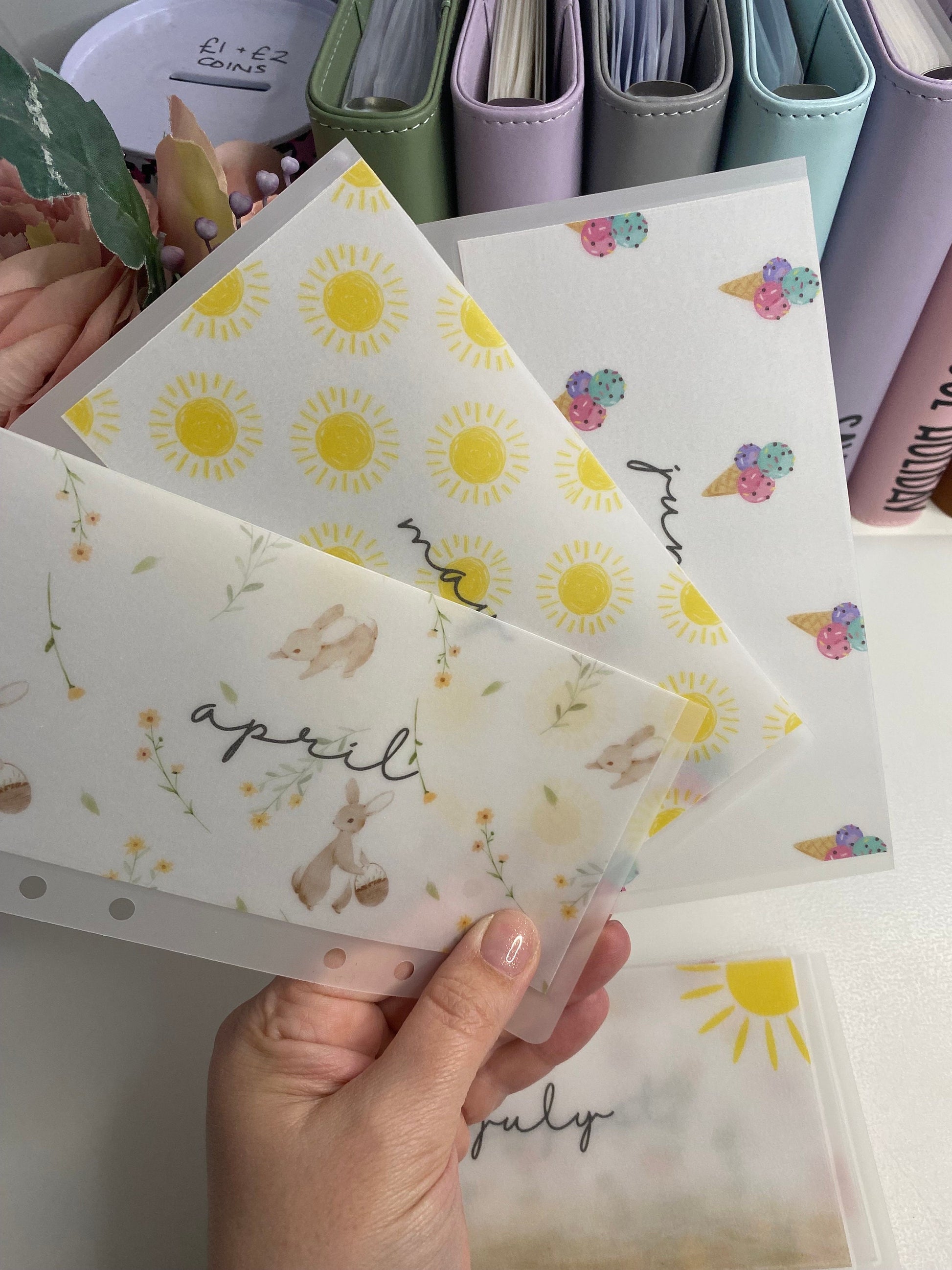 Monthly Vellum Wallets and/or trackers, Set of 12, weekly/monthly cash stuffing