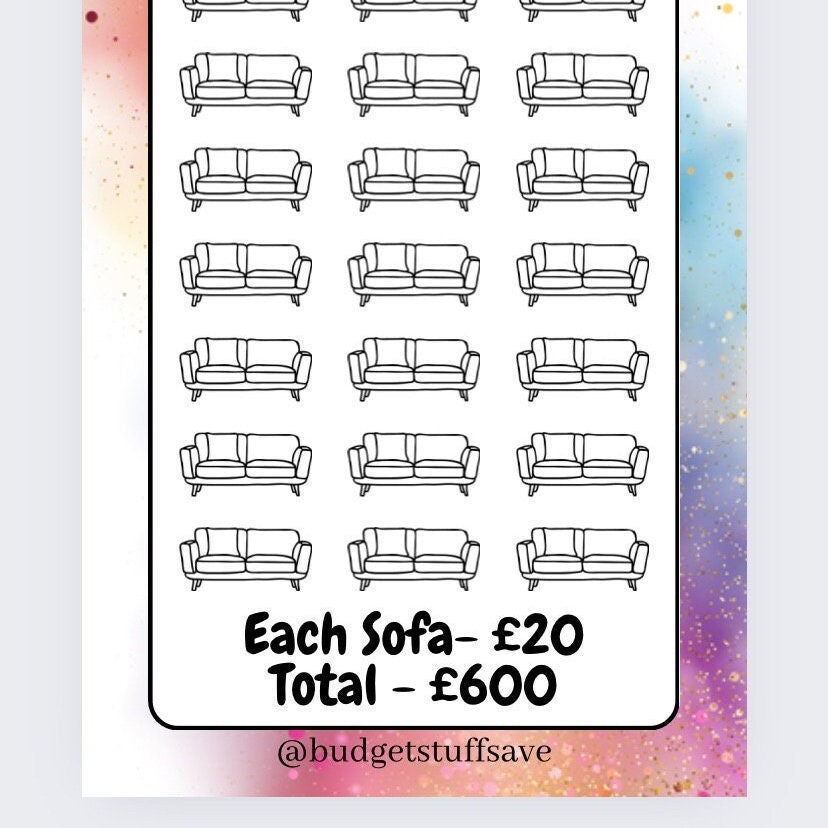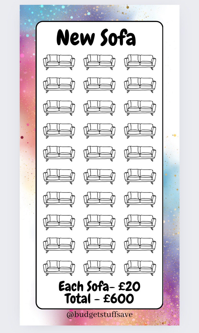 New Sofa Savings Tracker, cash Stuffing, Budgeting, A6 binder, Save money, Envelope method, Budget, Challenge