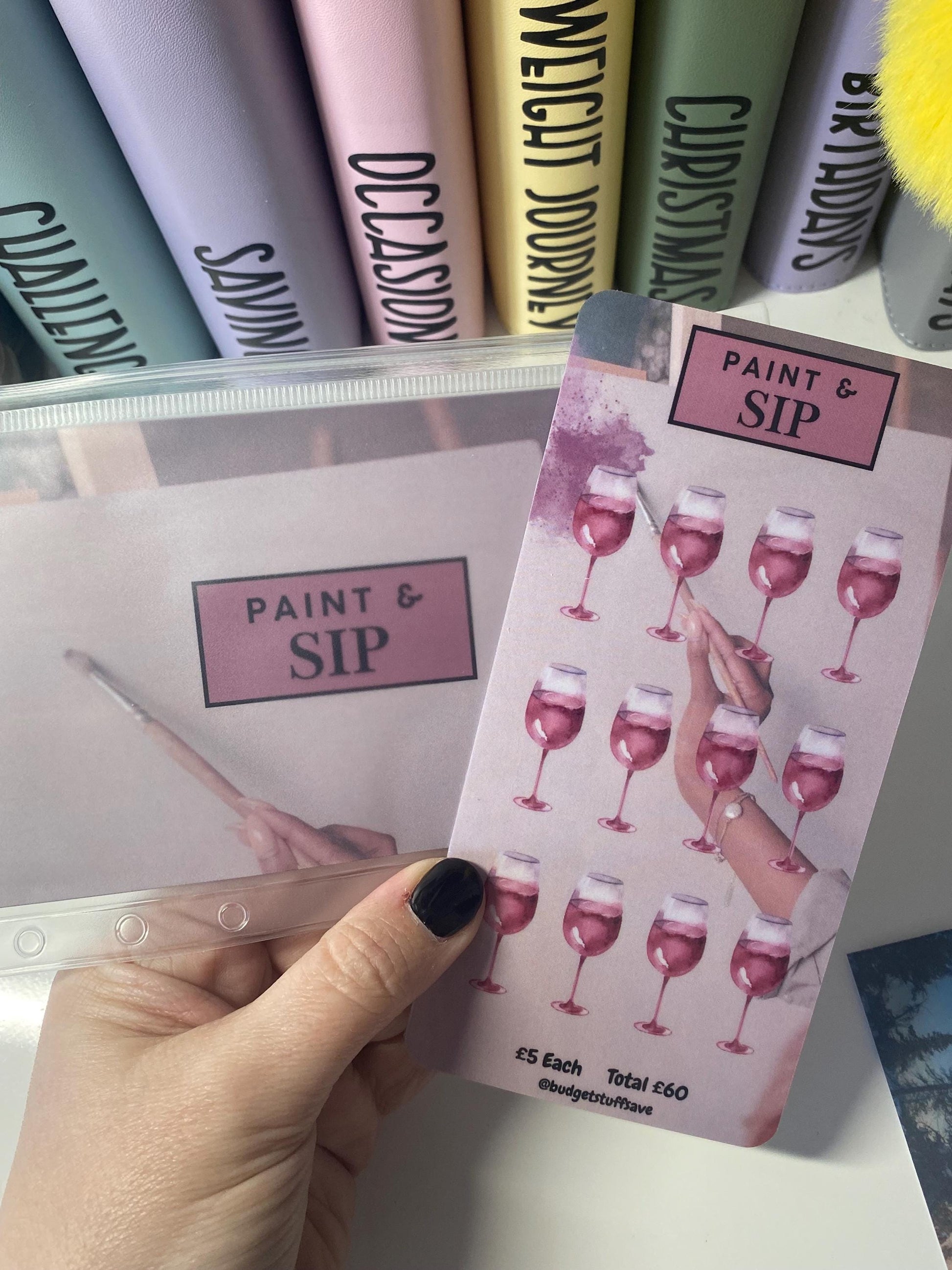 Paint & Sip Challenge Savings Tracker and wallet, cash Stuffing, Budgeting, A6 binder, Save money, Envelope method, Budget, bucket list