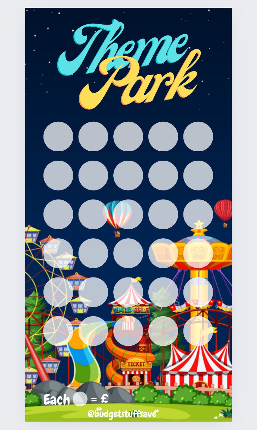 Theme Park themed Savings Tracker, cash Stuffing, Budgeting, A6 binder, Save money, Envelope method, Budget, Challenge