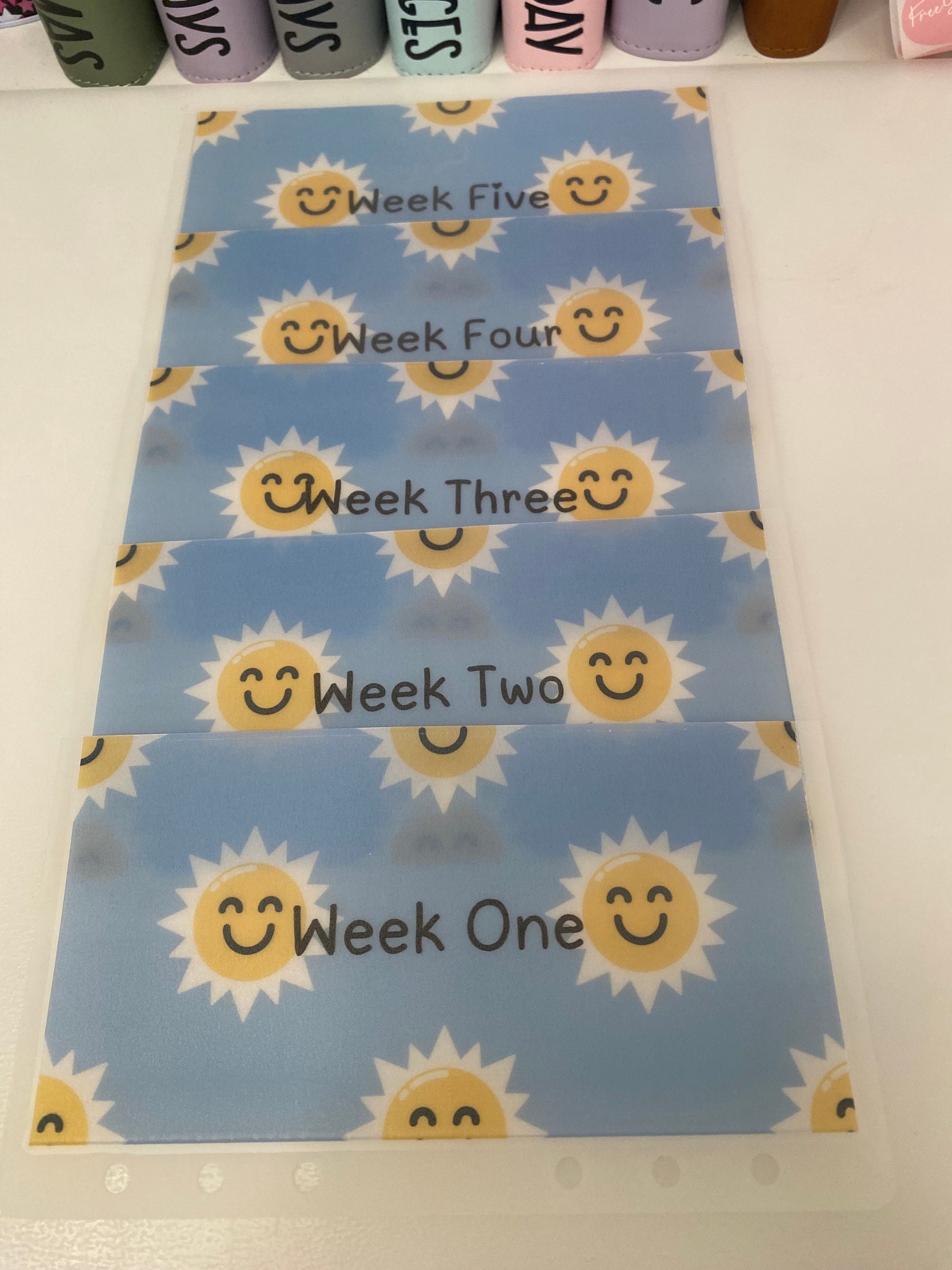 Week 1-5 SUNSHINE Vellum Wallets, weekly/monthly cash stuffing